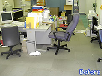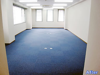 コメント:貸し事務所のオーナー様よりご依頼です。オーナー様にとってはタイルカーペットの高価な費用はたいへんなご負担です。今回の安価な費用にびっくりしたご様子でした。